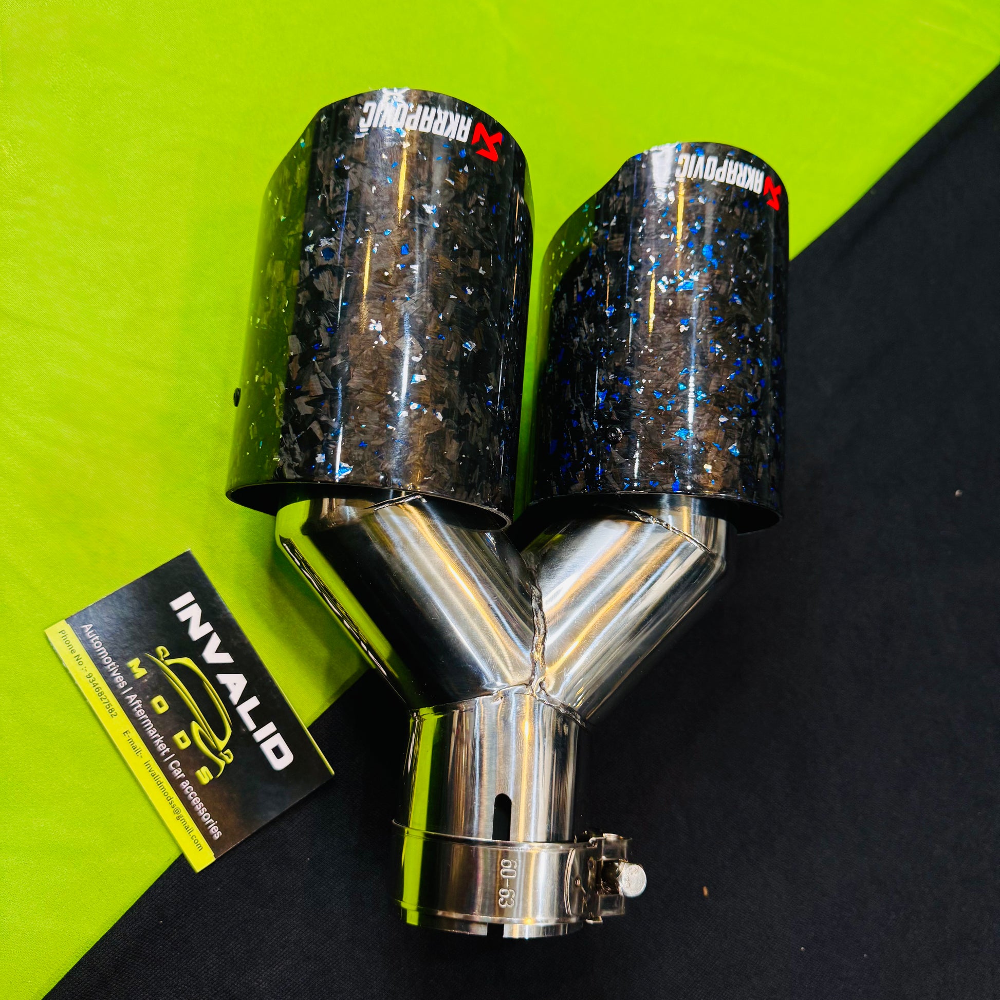 Unleash a performance-driven aesthetic with the Blue Forged Carbon Akrapovic Dual Exhaust Tip, also known as the Akra Dual Tip or Akra Exhaust Dual Tip. This dual silencer tip, crafted from ultra-lightweight and heat-resistant material and forged carbon fiber finished, enhances both Performance and Visual Appeal, functioning as a premium muffler tip or silencer tip for car modification enthusiasts.